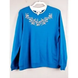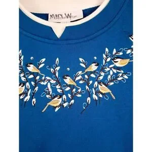 Vintage Breckenridge Sweatshirt Womens L Embroidery Floral Birds Granny Cottage