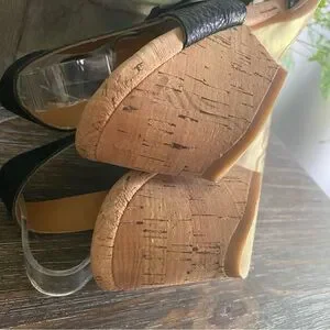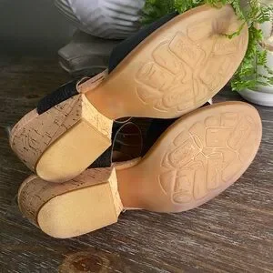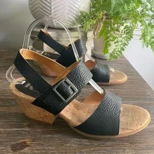 Kork-Ease Korks Laurelin Black Pebbled Leather Cork Block Heel Sandals Women 8 M