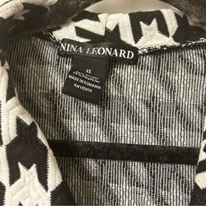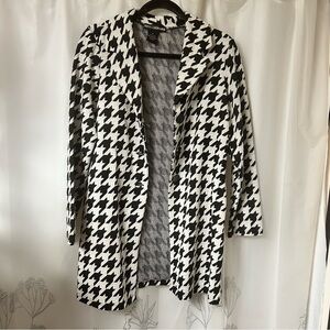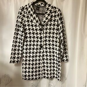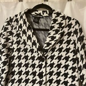 Chic houndstooth blazer by Nina Leonard. Striking black and white pattern. Ideal for a stylish ensemble.