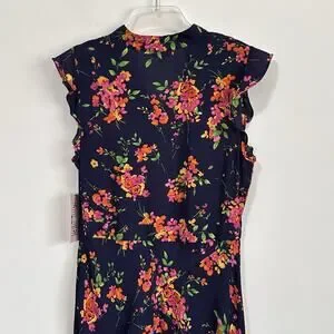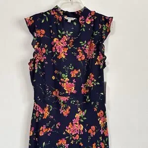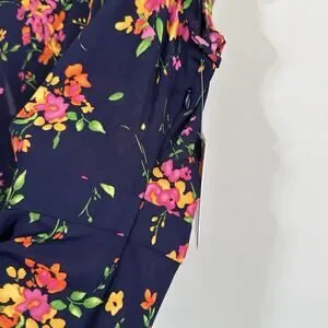 Nanette Lepore Floral Chiffon Dress Size 10 Ruffle Sleeveless Summer Navy NEW