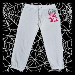 Stylish white joggers featuring a bold pink Aéropostale logo. Features a drawstring waist for comfort. Size XL Womens