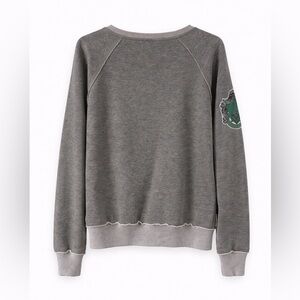 Soft, cozy, and perfect for cool days, this gray pullover features bold “SLYTHERIN” lettering across the front and the Slytherin crest patch on the sleeve. The raw hem detailing gives it a relaxed, vintage-inspired look.