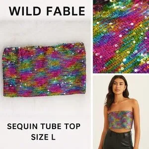Wild Fable Multicolor Sequin Top Size L Festival Clubwear Sparkly Strapless Y2K