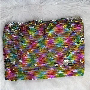 Turn heads in this dazzling Wild Fable sequin tube top, featuring a vibrant rainbow shimmer overlay that catches the light from every angle.