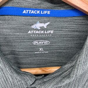 Keywords: Attack Life, Greg Norman, Polo shirt, Golf shirt, Play Dry, Moisture wicking, Mens, XL, Extra Large, Green polo, Gray polo, Golf apparel, Sports shirt, Athletic shirt, Shark logo
