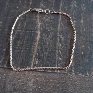 Twisted Rope Chain Gold Plated 925 Italy Silver Ankle Bracelet