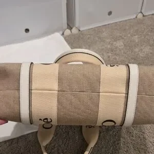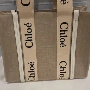 Stylish Chloe tote in beige canvas. Features logo straps. Perfect for daily use. used once! in new condition!
