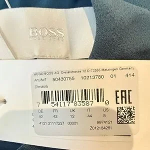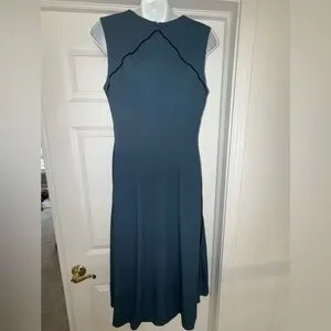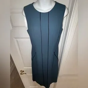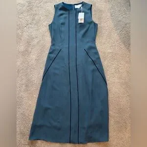 New With Tags Hugo Boss Women's Luxury Dimasia A-line Dress in Blue, Size 8. The blue is like a darker shade of a peacock blue, very pretty. This elegant workwear piece is designed with a sleeveless, A-line silhouette, slits in the front and features a round neckline, lined and a zip back closure. Speaks luxury. Its most distinctive design elements are the front slits and the structured seaming that provides a modern, tailored look. A blend of acetate and viscose or rayon (e.g., 70% Acetate, 30% Rayon). Beautiful and classy. MSRP $595.00. Approximate measurements while laying flat - 18.5" pit to pit, 47" from top to bottom of dress, 15.5" across waist area.