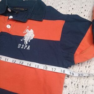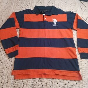 U.S. Polo Assn LS Polo Boys XL 14/16 Striped Blue Orange Rugby Pony Stitched #3