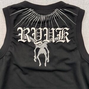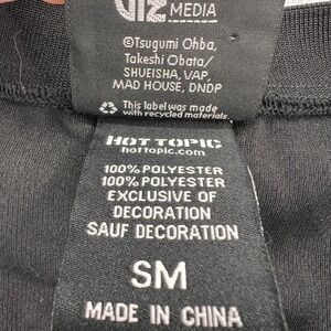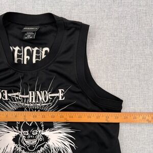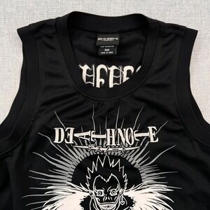 Death Note anime graphic tank top featuring Ryuk artwork and series logo on the front with additional graphic on the back. Official Hot Topic licensed merchandise made from lightweight polyester athletic mesh fabric. Great for anime fans, conventions, or casual streetwear styling. Good pre-owned condition, see images for details.
