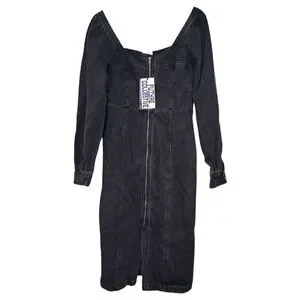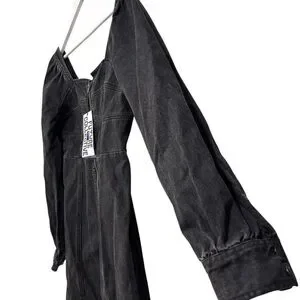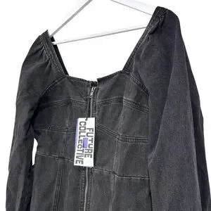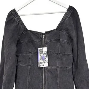 Future Collective Black Denim Long Sleeve Bustier Zipper Dress Size 14 NWT