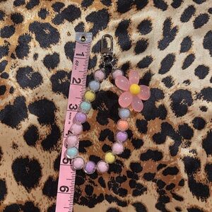 Add a splash of color to your accessories with this multicolor beaded keychain featuring a charming pink flower accent. Perfect for keeping your keys stylishly organized.