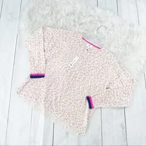 Sundry Women's Cream Leopard Spotted Pullover Sweater Size 3 Large
