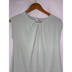 Liz Claiborne Top Blouse Shirt Women Size PS Light Green Round Neck Gold Metal. Condition is Pre-owned - Excellent.