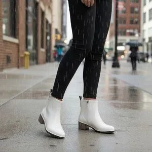 Chic white boots for winter. Stylish and comfortable. Ideal for rainy days.