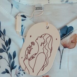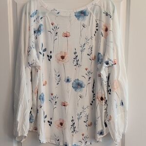 NWT Floral Boho V-Neck Blouse White With Blue and Pink Flowers