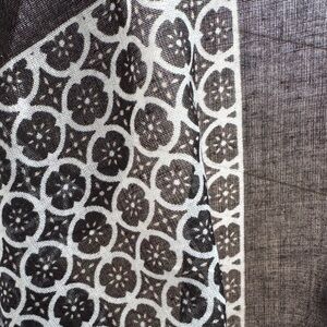 NWOT, feels like cotton or a cotton acrylic mix, but I’m not sure. This scarf has a nice medium weight and would be great for all seasons