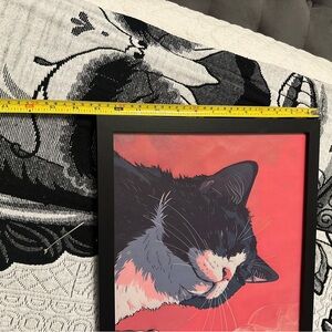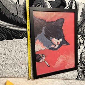 Framed in plexiglass black frame - plexiglass is in good shape may have a couple small blemishes but that’s pretty typical of the product - not noticeable when hung