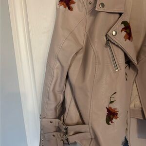 Really pretty “leather” jacket featuring vibrant floral & stud accents. In great condition.