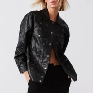 NWT Steve Madden Gabana Faux Leather Grommet Jacket Oversized XS