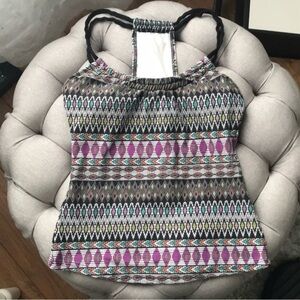 Make a statement at the beach with the Athena swim tankini top, featuring bold graphic patterns. This sleeveless top offers a comfortable fit, perfect for sun-soaked days by the water. Padding in bust with built in shelf bra. Racerback style. Perfect for hot summers by the pool or at the beach. Bundle multiple items for savings! Smoke free home.