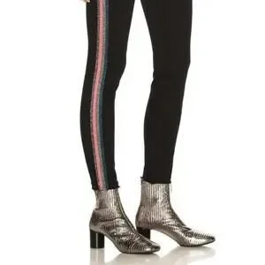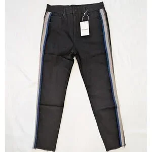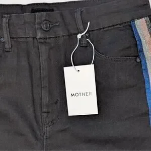 MOTHER The Swooner Dagger Ankle Fray Jeans Black Sheep Glitter Stripe 29