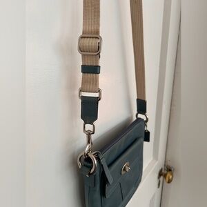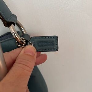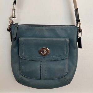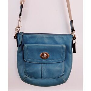 Beautiful turquoise Coach purse with silver hardware.