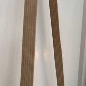 Adjustable strap, front pocket with silver closure and interior zippered pocket.