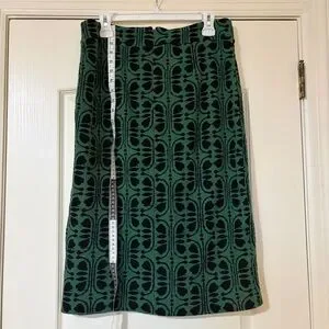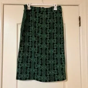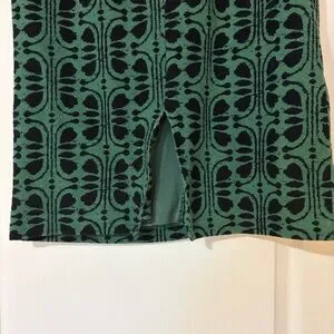 Size Large Maeve Green and Black Front Slit Patterned Pencil Skirt in Preowned Condition