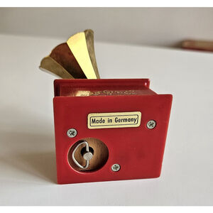 Vintage Gramophone Style Music Box Made in Germany Red & Gold Wind-Up Works