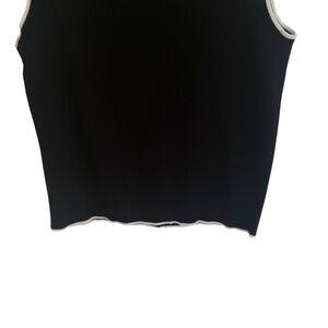 New with tags! Black, sleeveless, round neck, cardigan sweater vest with button front closures and white contrast piping. In great condition.