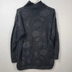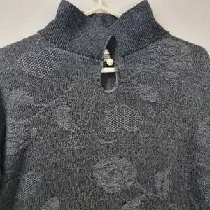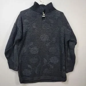 Vintage Huntington Ridge Floral Rose Knit Sweater Button Neck Pearl Detail Gray