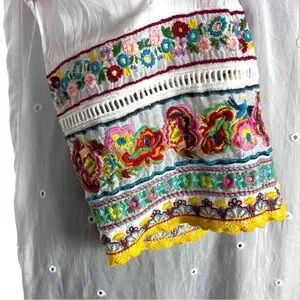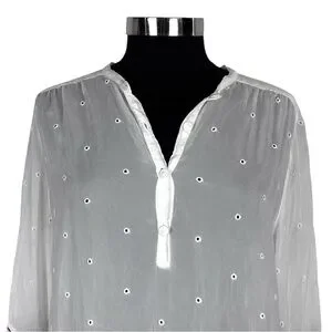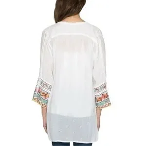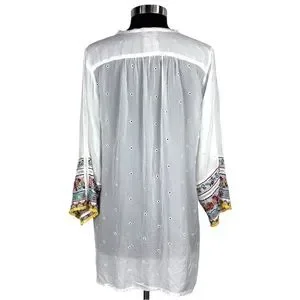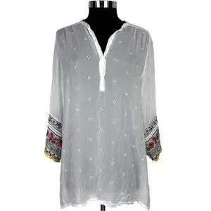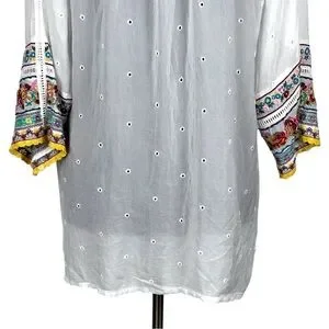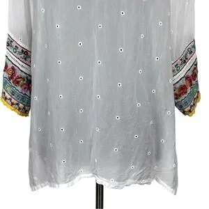 JOHNNY WAS EMBROIDERED EYELET BOHO PULLOVER TUNIC TOP