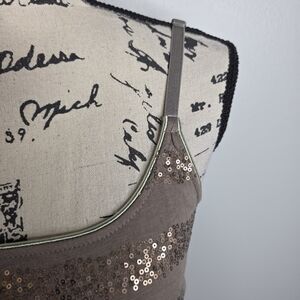 Y2K Daytrip Sequin Striped Camisole Tank Top Taupe Brown Medium