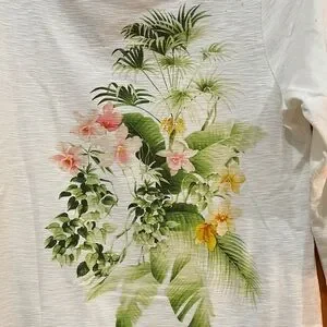 This white, heathered cotton top by Tommy Bahama is NWT. Featuring a lush tropical floral print. Ideal for casual wear.