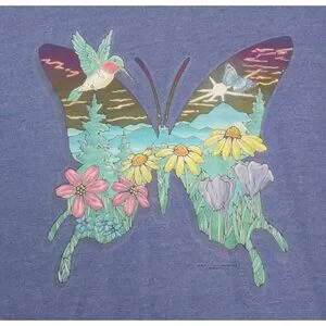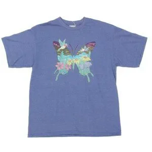 Vintage 90s Nature Butterfly Hummingbird Blue Men's T-Shirt 1999 Tee size L /056