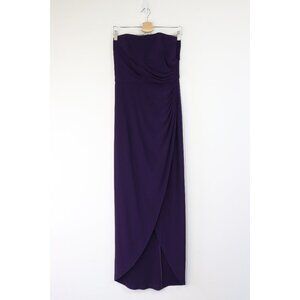 NEW La Femme 28204 Dress Sleeveless Stretch Jersey High Low Gown Dark Purple 10