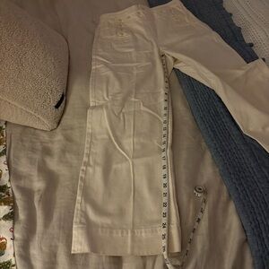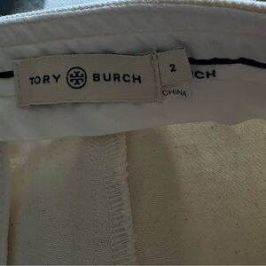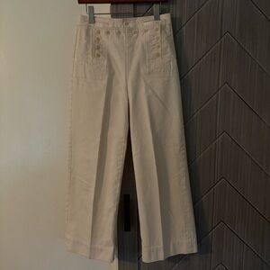 Tory Burch Button Fly Wide Leg Preppy Denim Cream High Rise Sailor Pants Size 2