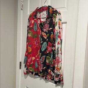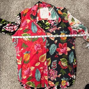 Cino 100% Cotton Roll Sleeve Floral Button Down Size XL