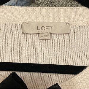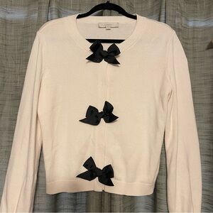 LOFT Women’s Ivory Cardigan with Black Bow Accents Size Large