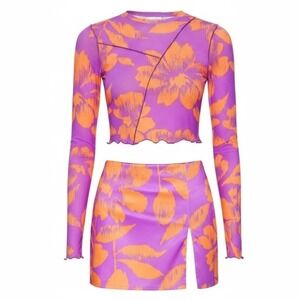 AFRM Women Tropical Floral Mesh 2 Piece Set Crop Top Mini Skirt Size Medium