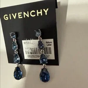 Chic Givenchy earrings with deep blue teardrop stones. Ideal for a stylish touch.