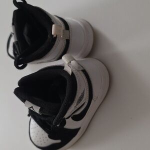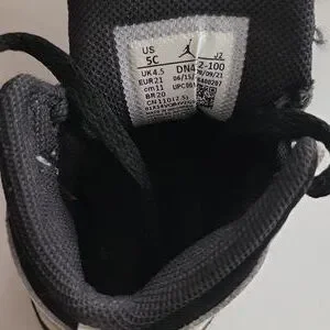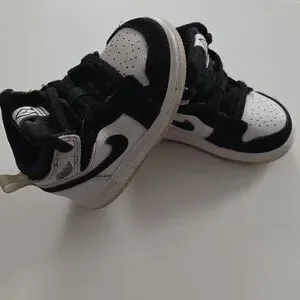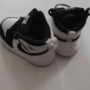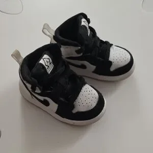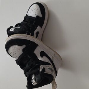 Classic Jordan sneakers for a toddler boy. Black and white design. Perfect for daily adventures. Excellent condition with normal wear at the bottom. Size 5C