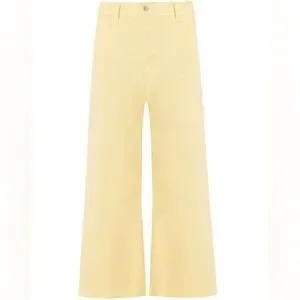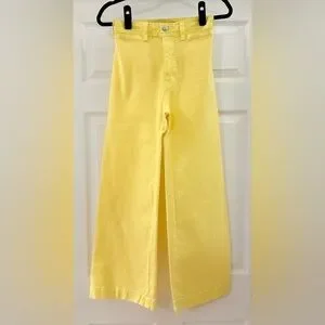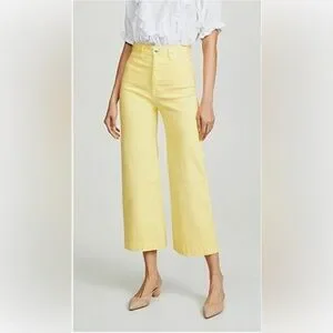 Veronica Beard Cynthia Gaucho CROP WIDE LEG JEANS Denim. Yellow. Size 24. New without tags, but have a tiny spot toward the bottom front of one leg (pictured) that should come right out in the wash. I just didn’t want to wash a brand new pair of jeans and then not be able to call them new anymore.