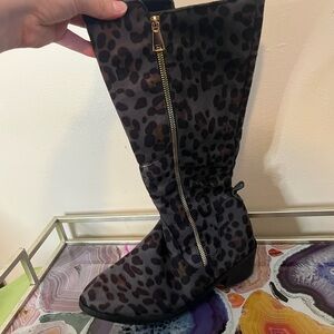 Stylish boots with a bold leopard print. Features a convenient side zipper. note scuff marks and the size is a 38 so US size 7-7.5