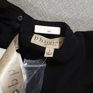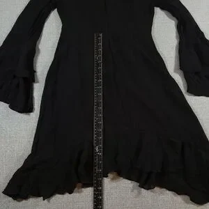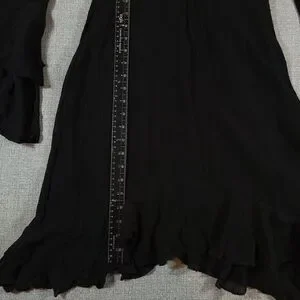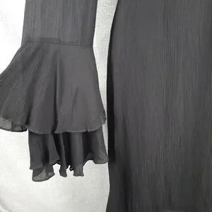 Philosophy Dress Womens size 2 Flowing Lined Shark Bite Hem Ruffled Bell Sleeves Black Gauzy