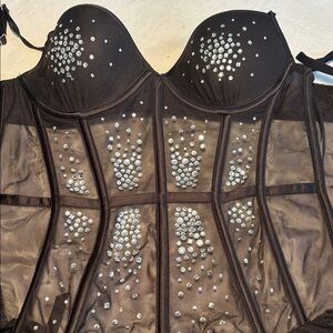 Victoria's Secret Black Rhinestone Embellished Corset Sz 34C