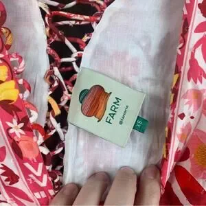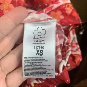 Farm Rio size XS romantic orchard tiered midi dress pink red white