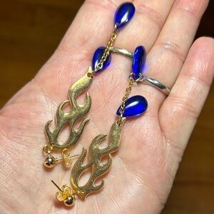 Elegant gold earrings with striking blue teardrop accents. Perfect for adding a touch of sophistication to any outfit.