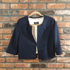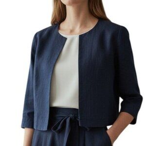 J. Crew Baird McNutt Cropped Irish Linen Jacket in Navy Blue Workwear Women's 8